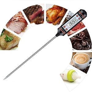 Dieses digitale Lebensmittel-Thermometer ist perfekt für die Zubereitung einer Vielzahl von Speisen: von Joghurt und Süßigkeiten über die Zubereitung von Käse und Brot bis hin zum Grillen von Fleisch, Geflügel und Fisch. Auch die Herstellung von Pizza, Obstsnacks und Gänseleber für besondere Anlässe wird mit diesem Thermometer zum Kinderspiel. Egal, ob Sie ein erfahrener Koch oder ein Anfänger sind, es ist ein unverzichtbares Zubehör für Ihre Küche.