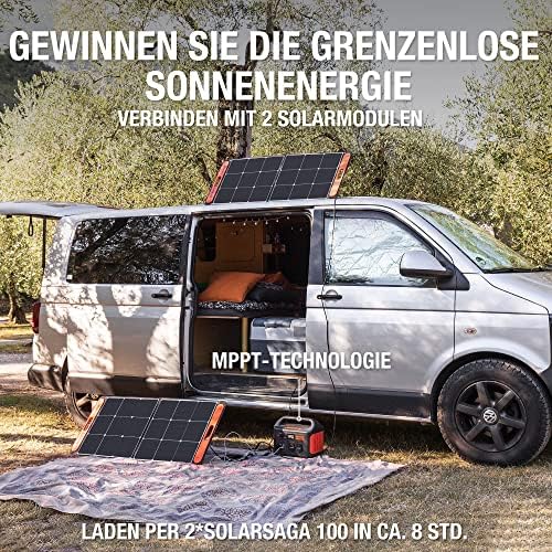 Dank des integrierten Anderson-Eingangs können Sie den Explorer 1000 unkompliziert mit 2 x SolarSaga 100W-Solarmodulen verbinden (nicht im Lieferumfang enthalten). Mit dem im Lieferumfang enthaltenen SolarSaga Y-Parallelkabel ist das System in der Lage, in nur 8 Stunden vollständig aufgeladen zu werden – eine umweltfreundliche Lösung für Ihre Energiebedürfnisse.