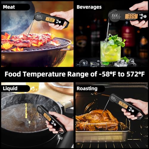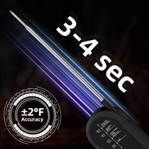 Entdecken Sie die Vorteile unseres Fleischthermometers, das Ihnen in nur 3-4 Sekunden eine genaue Temperaturmessung bietet. Mit einer Präzision von ±2°F und einem weiten Temperaturbereich von -58°F bis 572°F (-50°C bis 300°C) ist dieses Thermometer das perfekte Küchenwerkzeug für sowohl professionelle Köche als auch passionierte Hobbyköche.