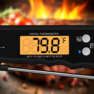 Unser Instant Meat Thermometer bietet nicht nur eine hohe Genauigkeit, sondern auch eine benutzerfreundliche Sperre-Funktion. Diese hält die aktuelle Temperaturanzeige fest, sodass Sie sich auf das Zubereiten Ihrer Speisen konzentrieren können. Zudem ermöglicht die Kalibrierungsfunktion eine Anpassung des Thermometers, um stets präzise Ergebnisse zu gewährleisten.
