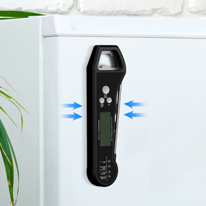 Mit einer robusten Bauweise eignet sich unser Fleischthermometer hervorragend für den Einsatz in der Küche. Die IPX7 Wasserbeständigkeit ermöglicht eine einfache Reinigung unter fließendem Wasser. Die hochwertige Sonde aus 304er Edelstahl ist ungiftig und lebensmittelsicher, garantiert einen hohen Hygienestandard. Zudem können Sie das Thermometer dank der magnetischen Rückseite einfach an Metalloberflächen anbringen oder es mithilfe eines Hakens aufhängen.