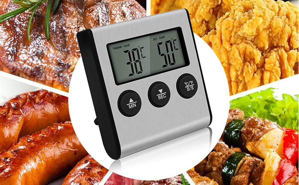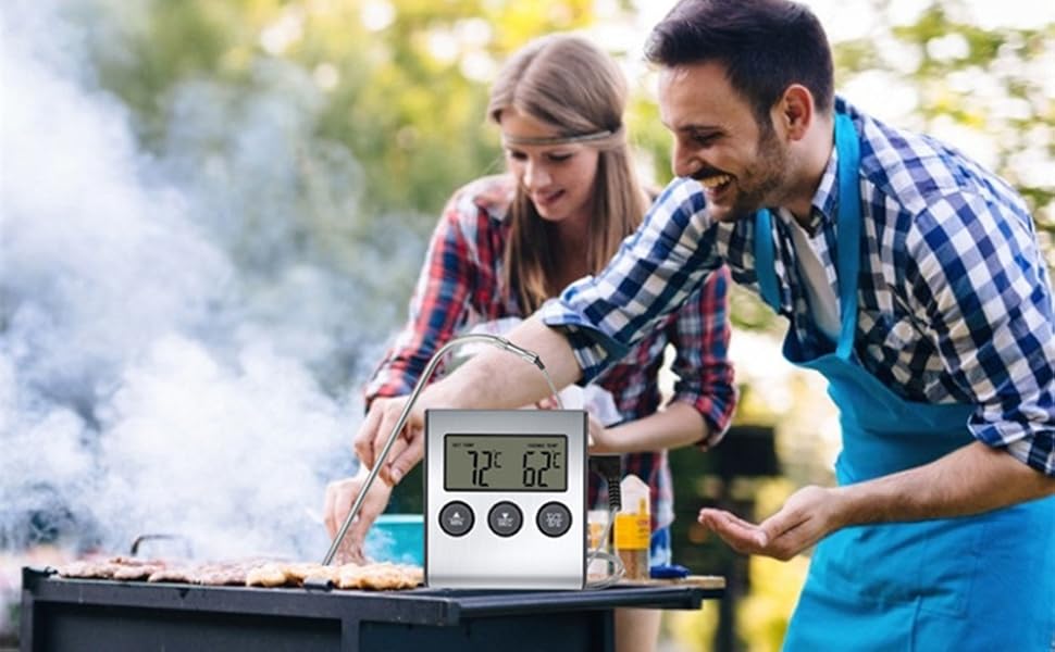 Meichoon Fleischthermometer für Grill und Küche – Präzises Kochen mit Timer und Sonde für Fleisch, Wasser, Milch und Wei