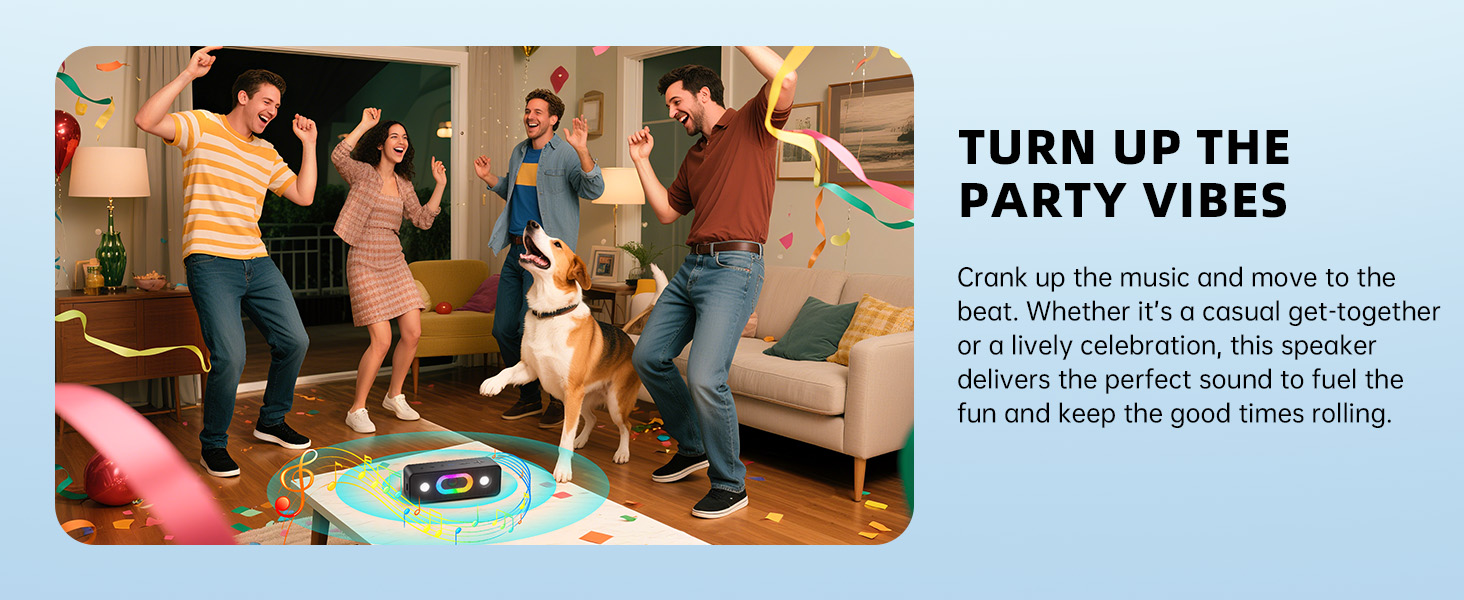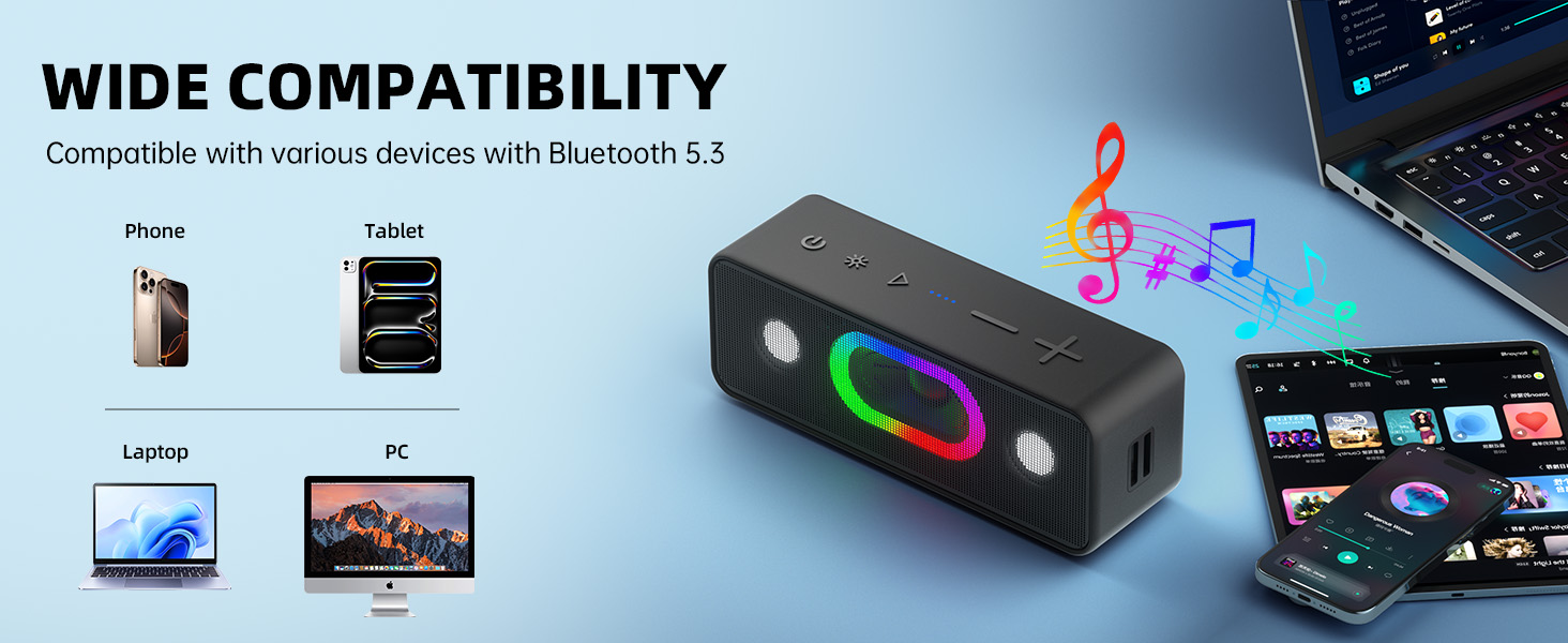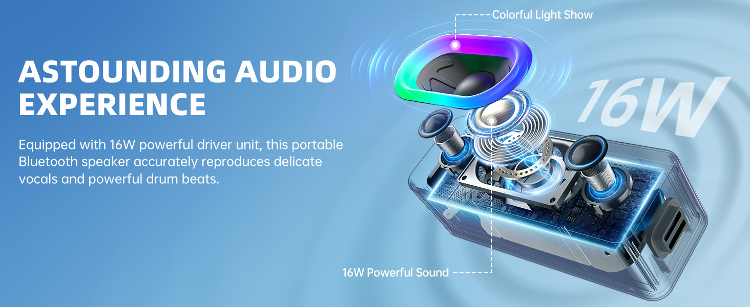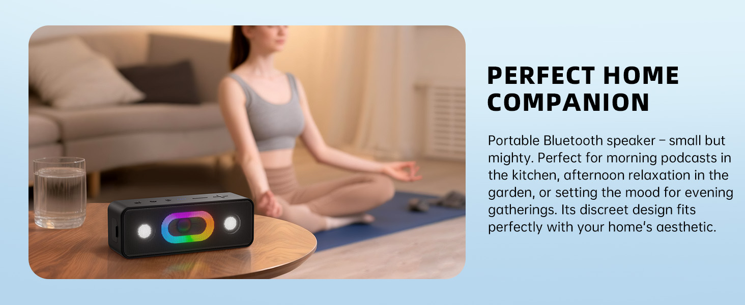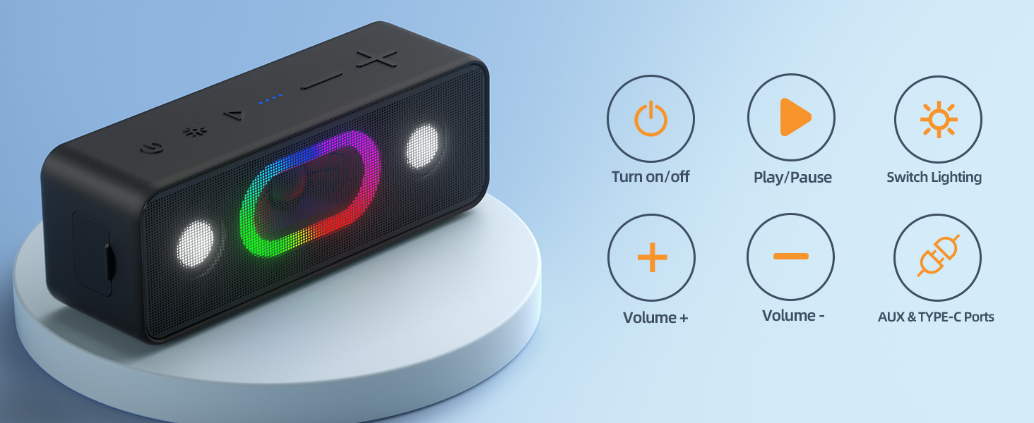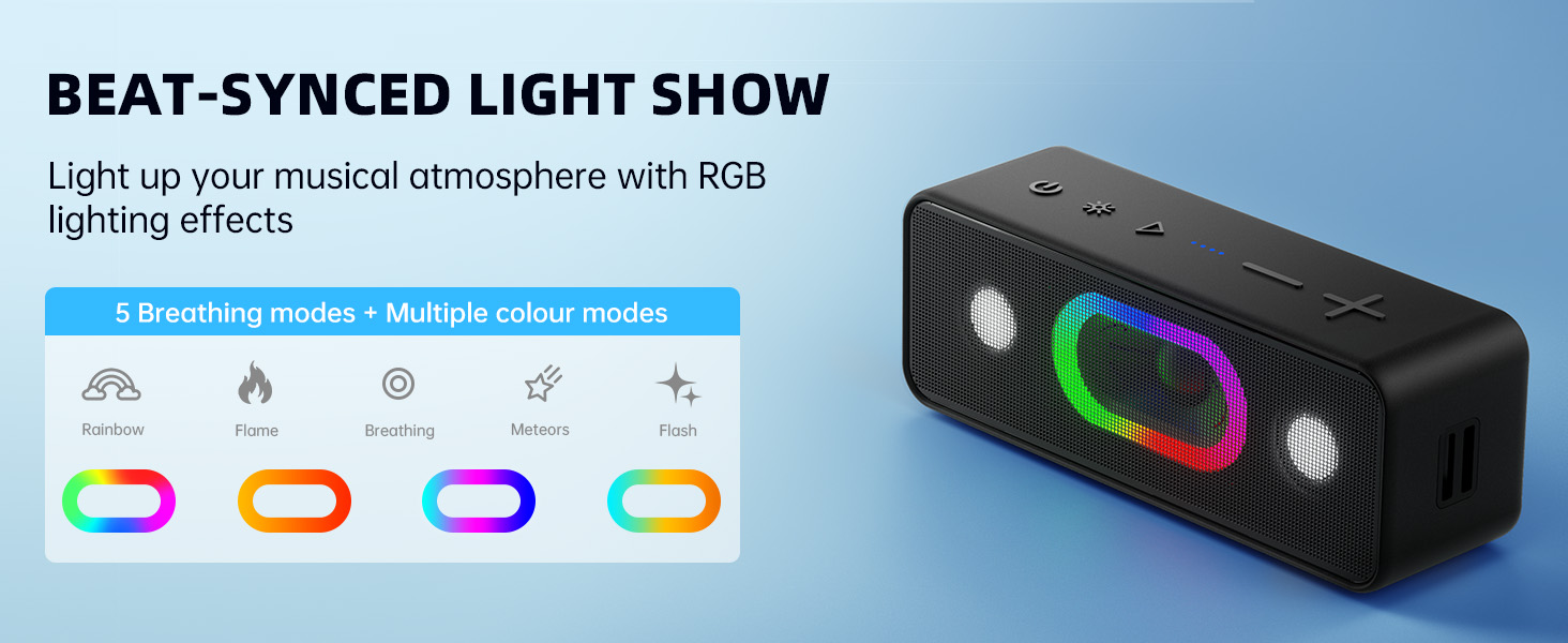 Erleben Sie ein visuelles Spektakel mit unserer neuesten Musikbox! Ausgestattet mit fünf integrierten RGB-Beleuchtungsmodi, reagiert dieser Lautsprecher intelligent auf die Musikrhythmen und lässt die Lichter im Takt pulsieren. Egal ob bei einer Familienfeier, einer Party oder einfach nur beim Entspannen zu Hause – die mitreißenden Lichteffekte schaffen eine unvergleichliche Atmosphäre und verleihen Ihrem Raum einen einzigartigen Stil.