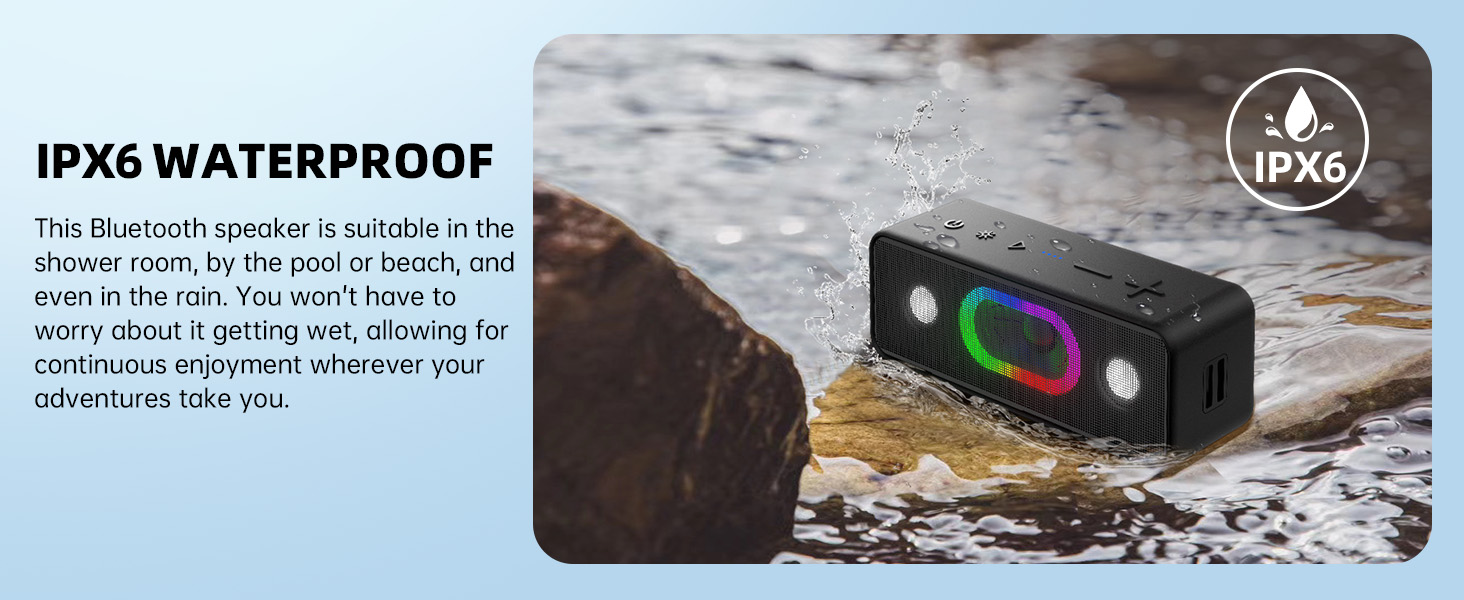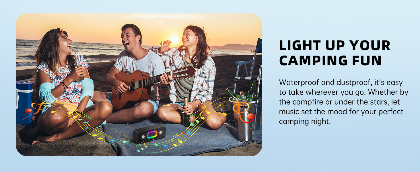 Mit der IPX7-Zertifizierung ist dieser Lautsprecher absolut wetterfest – egal ob Regen, Schnee oder Staub, er hält allem stand. Erleben Sie Ihre Musik überall, sei es beim Reiten, Camping, am Strand oder beim Wandern, ohne sich um Wetterbedingungen oder äußere Einflüsse sorgen zu müssen. Der tragbare Bluetooth-Lautsprecher ist Ihr idealer Begleiter für Abenteuer im Freien.